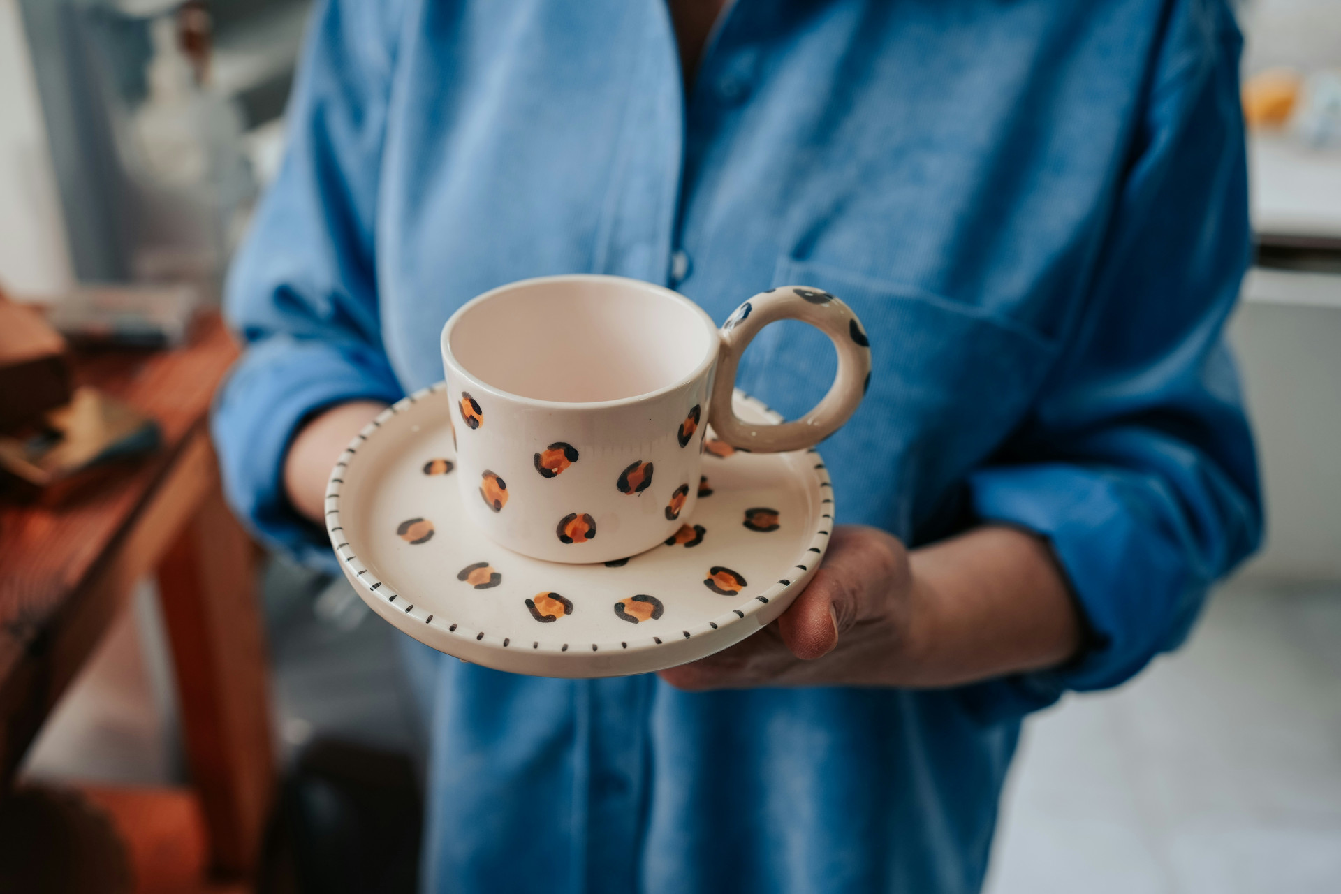 Ett fat skyddar bordet från värme och spill samtidigt som det ger ett prydligt och komplett intryck. Det kan också användas för att lägga skeden eller en liten kaka.